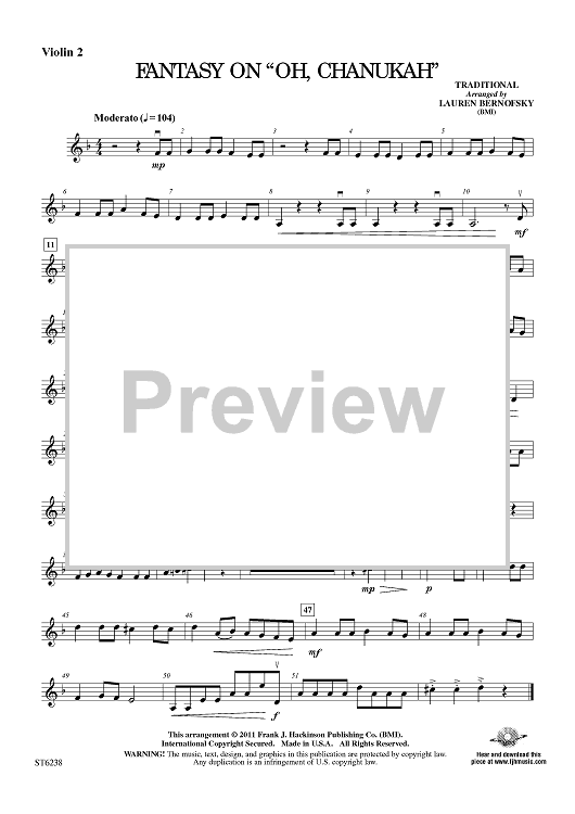 Digital Sheet Music for Fantasy on "Oh, Chanukah" - Violin 2 by Traditional, Lauren Bernofsky scored for String Orchestra; id:421760