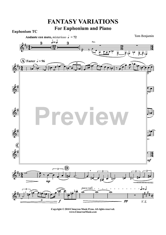 "Fantasy Variations - Euphonium BC/TC" Sheet Music by Tom Benjamin