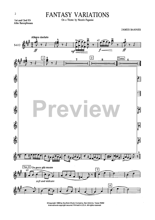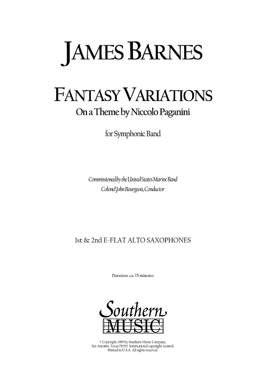 Digital Sheet Music for Fantasy Variations on a Theme of Paganini - Eb Alto Sax 1 & 2 by James Barnes scored for Concert Band; id:503464