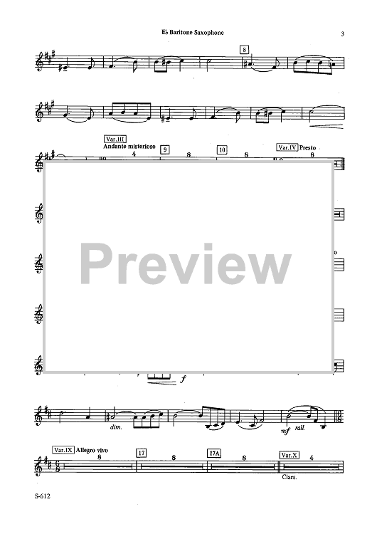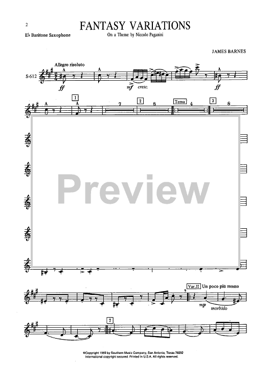 Digital Sheet Music for Fantasy Variations on a Theme of Paganini - Eb Baritone Sax by James Barnes scored for Concert Band; id:503466