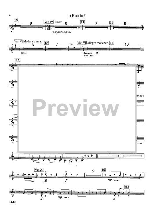 Digital Sheet Music for Fantasy Variations on a Theme of Paganini - F Horn 1 by James Barnes scored for Concert Band; id:503470