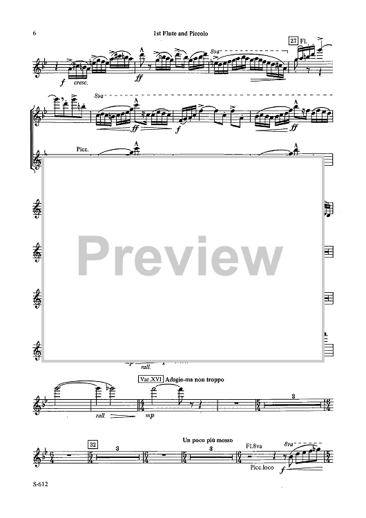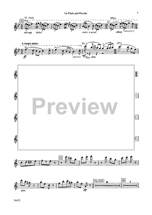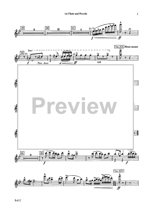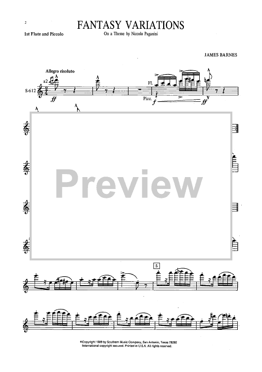 Digital Sheet Music for Fantasy Variations on a Theme of Paganini - Flute 1 & Piccolo by James Barnes scored for Concert Band; id:503454