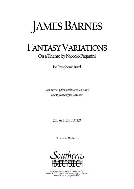 Digital Sheet Music for Fantasy Variations on a Theme of Paganini - Flutes 2 & 3 by James Barnes scored for Concert Band; id:503455
