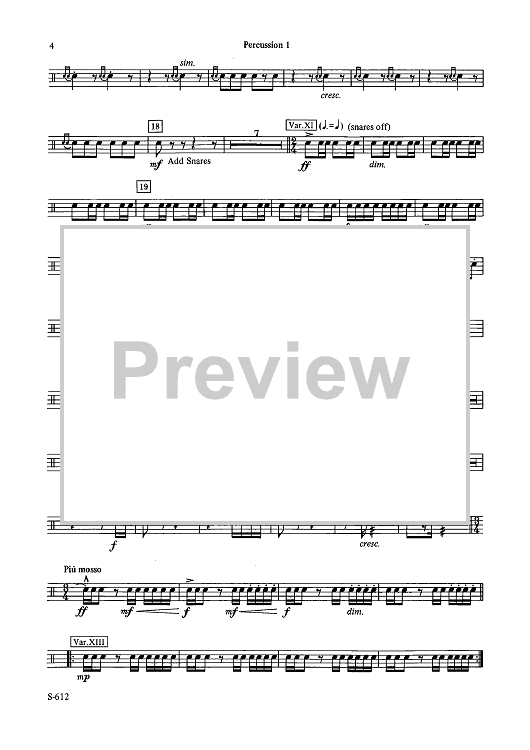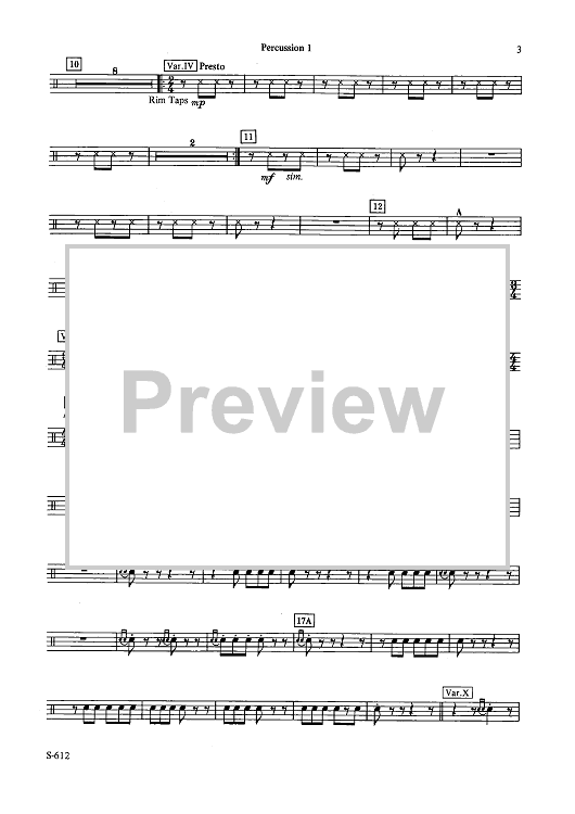Digital Sheet Music for Fantasy Variations on a Theme of Paganini - Percussion 1 by James Barnes scored for Concert Band; id:503482
