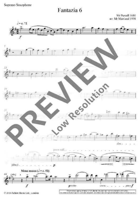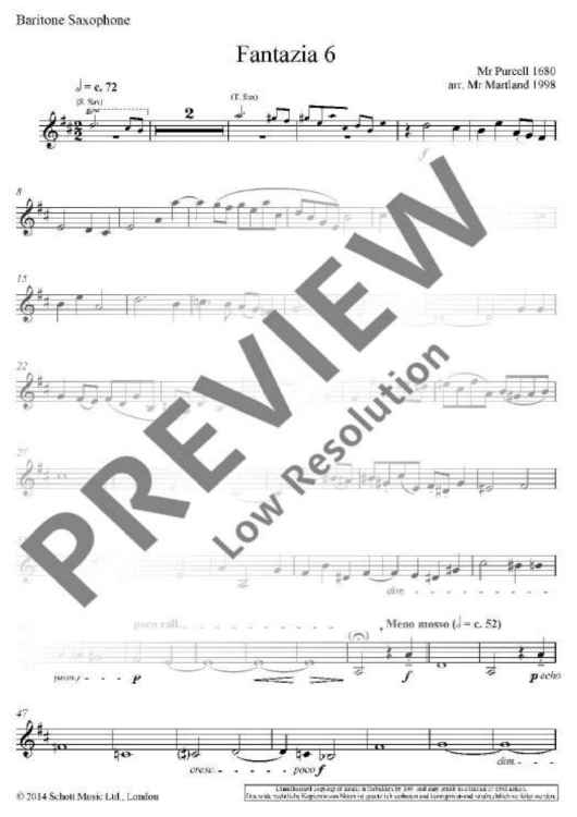 Published alongside Martland’s arrangement of Purcell’s Fantazia 7 for trombone quartet, Fantazia 6 for saxophone quartet follows in a long line of exceptionally inventive arrangements by Steve Martland which includes Step by Step for wind octet and One Note Fantasy for brass quintet.
