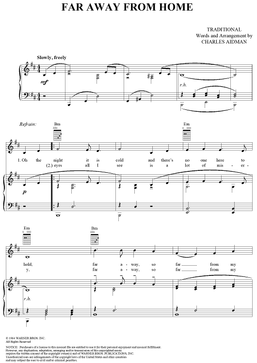 Digital Sheet Music for Far Away from Home by Charles Aidman, Traditional scored for Piano/Vocal/Chords; id:355708