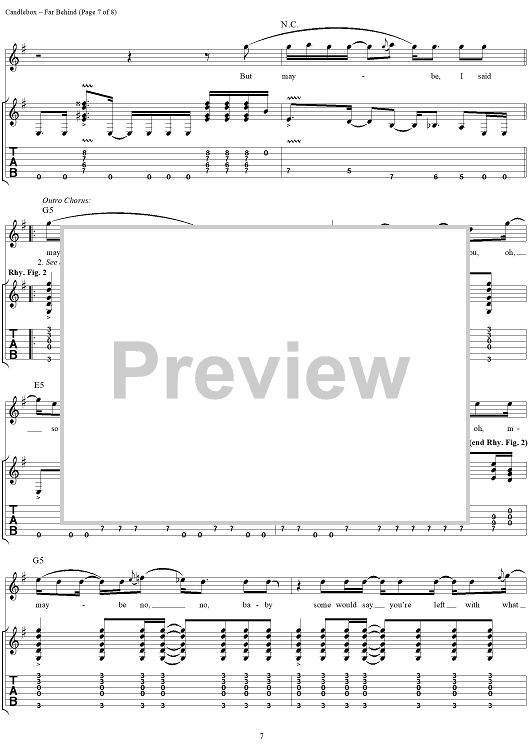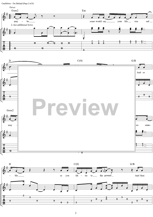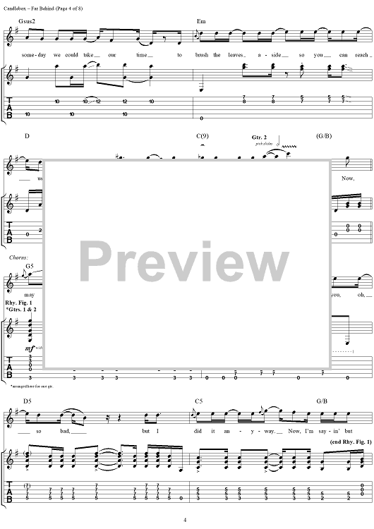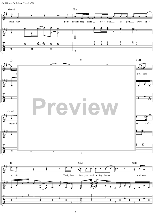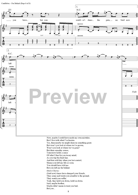 Digital Sheet Music for Far Behind by Kevin Martin, Candlebox scored for Guitar Tab/Vocal; id:112217