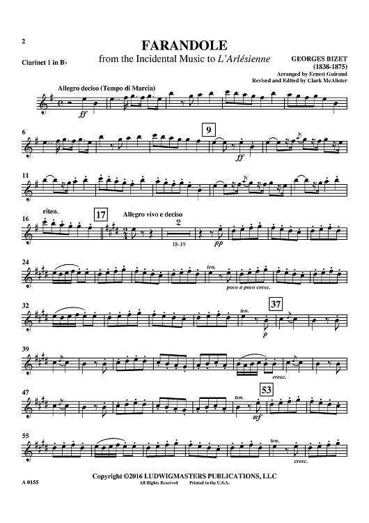 Digital Sheet Music for Farandole - from the Incidental Music to L’Arlésienne - Clarinet 1 in Bb by Georges Bizet, Ernest Guiraud scored for Full Orchestra; id:462200