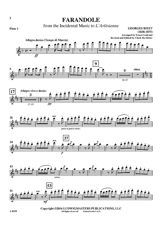 Digital Sheet Music for Farandole - from the Incidental Music to L’Arlésienne - Flute 1 by Georges Bizet, Ernest Guiraud scored for Full Orchestra; id:462196