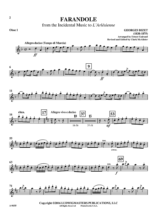 Digital Sheet Music for Farandole - from the Incidental Music to L’Arlésienne - Oboe 1 by Georges Bizet, Ernest Guiraud scored for Full Orchestra; id:462198