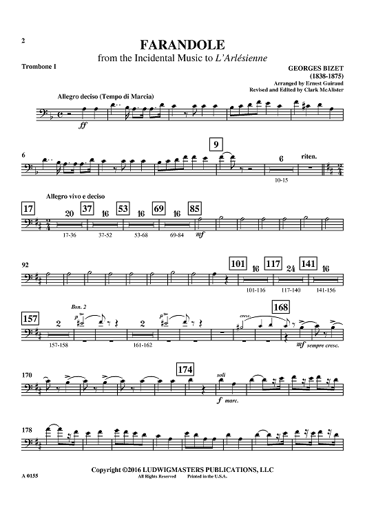 Digital Sheet Music for Farandole - from the Incidental Music to L’Arlésienne - Trombone 1 by Georges Bizet, Ernest Guiraud scored for Full Orchestra; id:462210