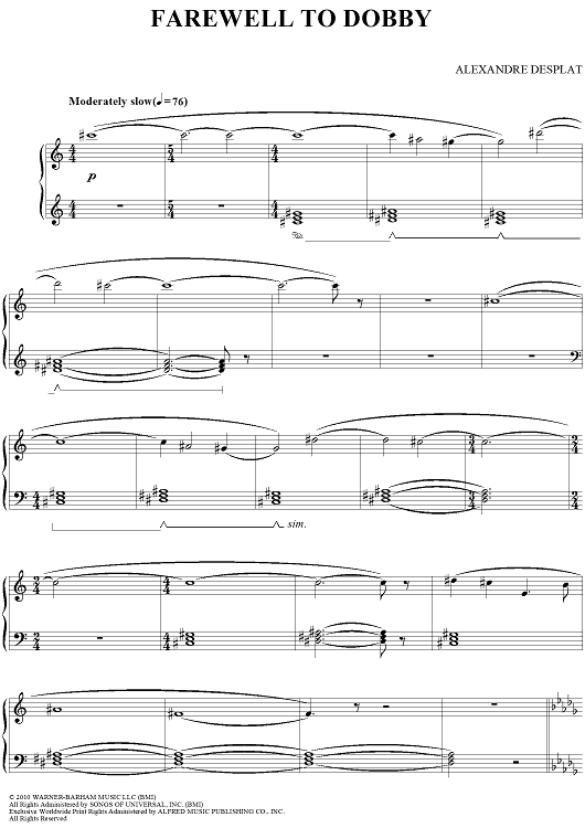 "Farewell To Dobby" Sheet Music by Alexandre Desplat