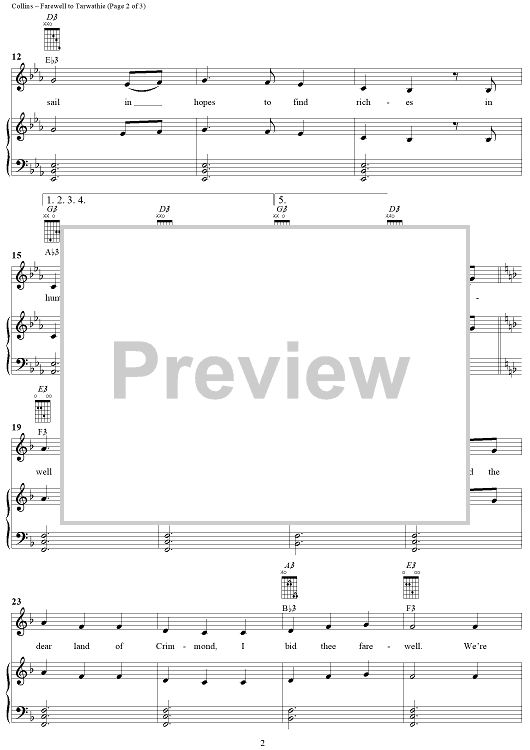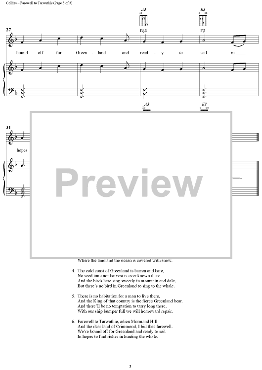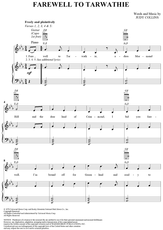 Digital Sheet Music for Farewell to Tarwathie by Judy Collins scored for Piano/Vocal/Chords; id:285944