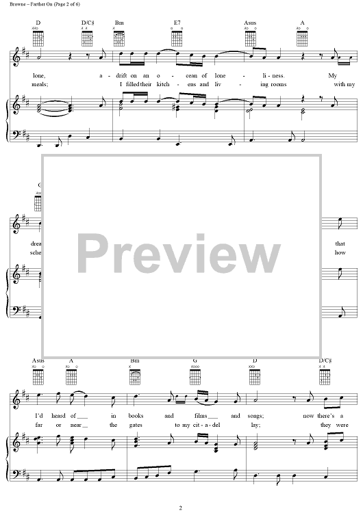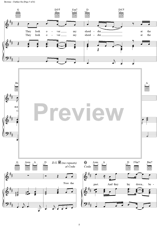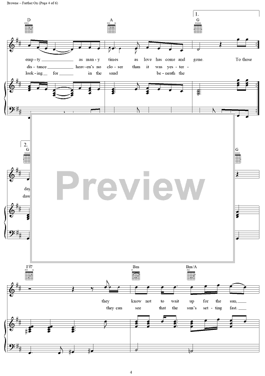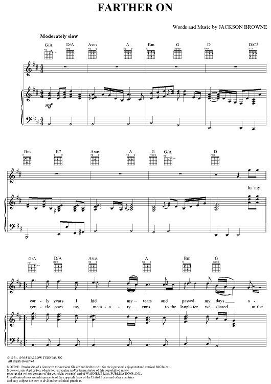 Digital Sheet Music for Farther On by Jackson Browne scored for Piano/Vocal/Chords; id:274674