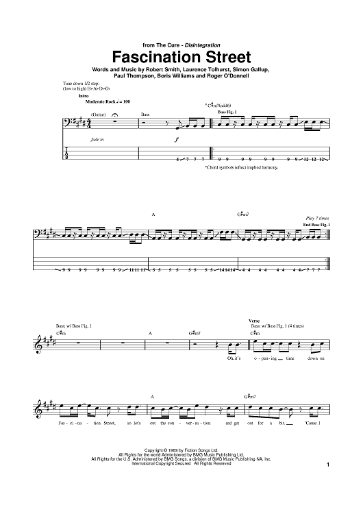 Digital Sheet Music for Fascination Street by Wolfman Jack, The Cure, Simon Gallup, Roger O'Donnell, Paul Thompson, Laurence Tolhurst, Boris Williams scored for Bass Tab; id:383068
