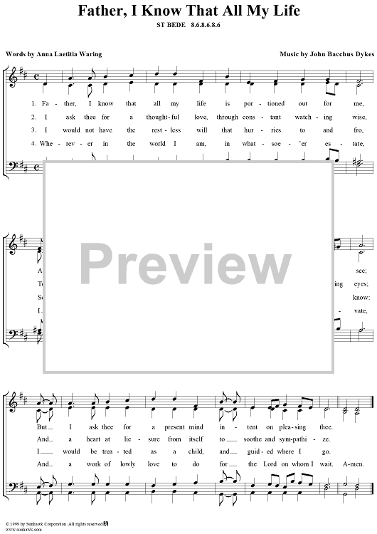 Digital Sheet Music for Father, I Know That All My Life by John Bacchus Dykes scored for Four-part Mixed Chorus; id:270949