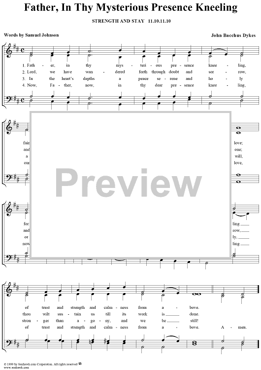 Digital Sheet Music for Father, In Thy Mysterious Presence Kneeling by John Bacchus Dykes scored for Four-part Mixed Chorus; id:270737