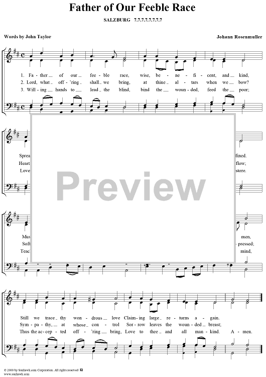 Digital Sheet Music for Father of Our Feeble Race by Johann Rosenmüller scored for Four-part Mixed Chorus; id:176598