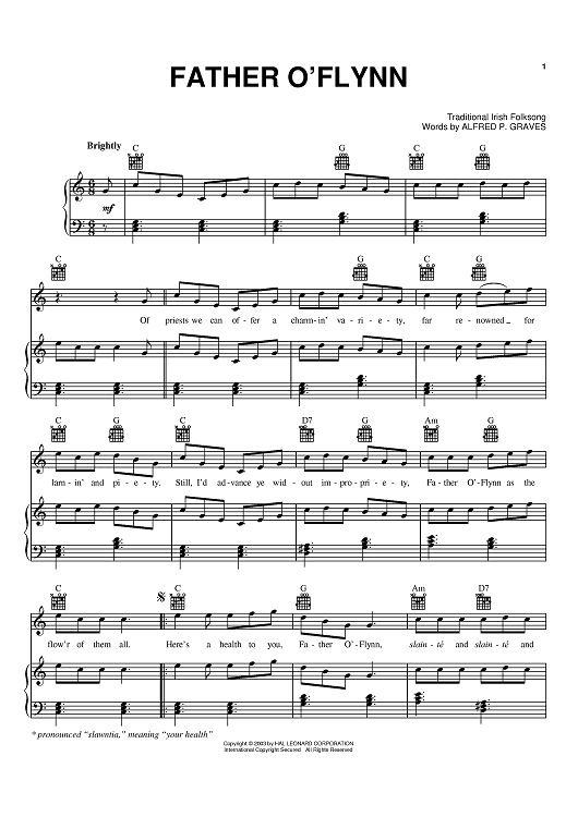 Digital Sheet Music for Father O'Flynn by Alfred P. Graves scored for Piano/Vocal/Chords; id:373109