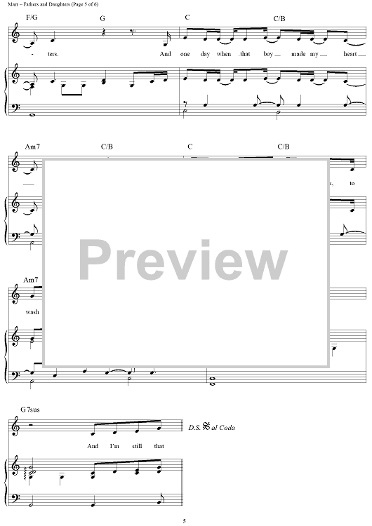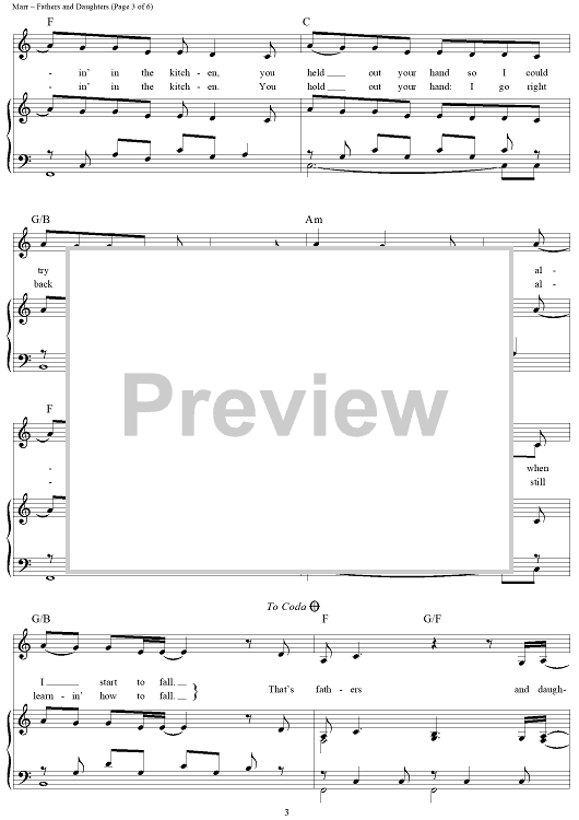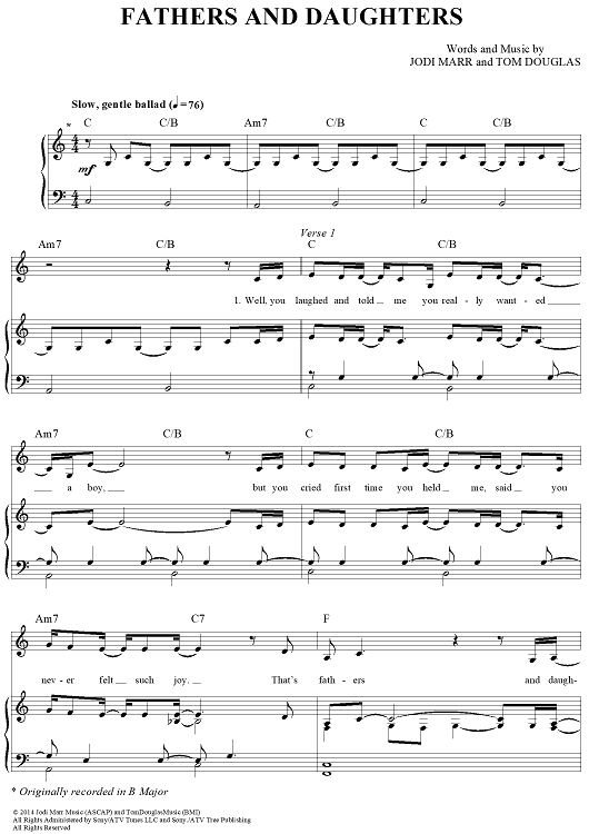 Digital Sheet Music for Fathers and Daughters by Tom Douglas, Jodi Marr, Kristin Chenoweth scored for Piano/Vocal/Chords; id:447211