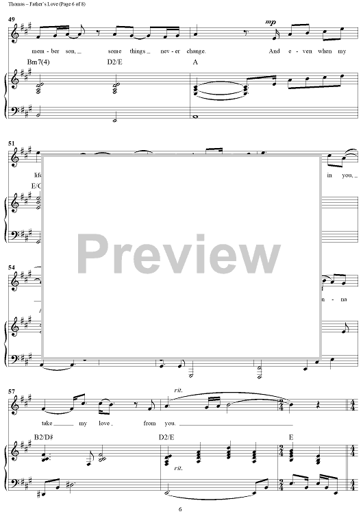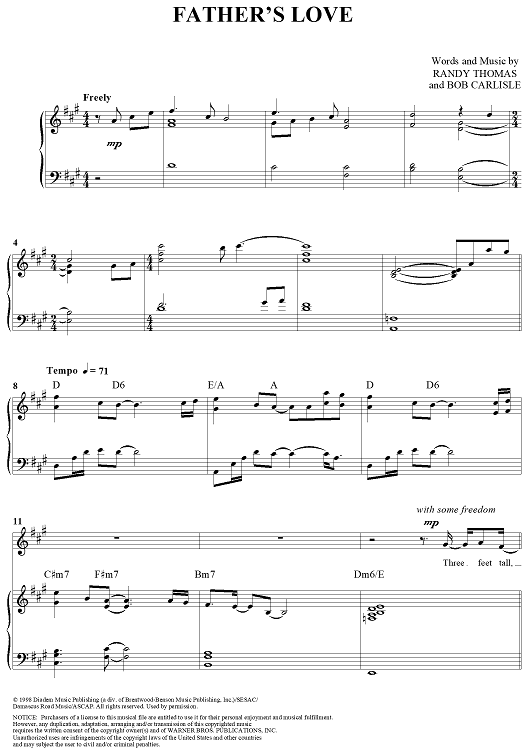 Digital Sheet Music for Father's Love by Randy Thomas, Bob Carlisle scored for Piano/Vocal/Chords; id:260910