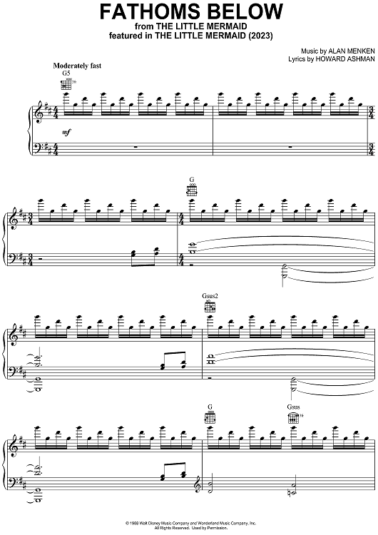 Digital Sheet Music for Fathoms Below - from The Little Mermaid - featured in The Little Mermaid (2023) by Alan Menken, Howard Ashman scored for Piano/Vocal/Chords; id:500336
