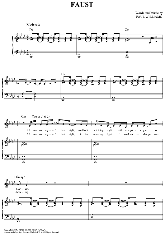 Digital Sheet Music for Faust by Paul Williams scored for Piano/Vocal/Chords; id:263423