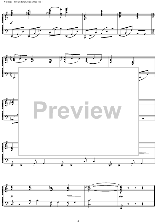 Digital Sheet Music for Fawkes the Phoenix by John Williams scored for Piano Solo; id:292746