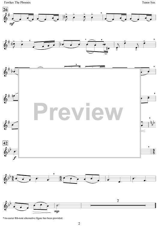 Digital Sheet Music for Fawkes the Phoenix by John Williams scored for Tenor Sax/Piano; id:317319