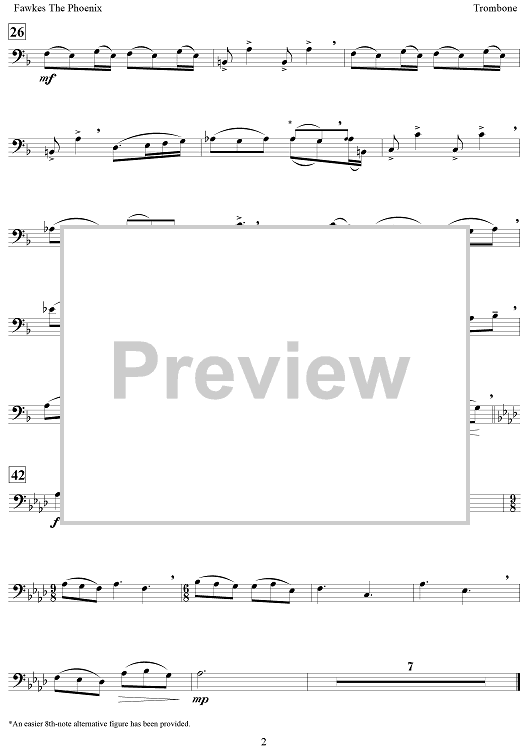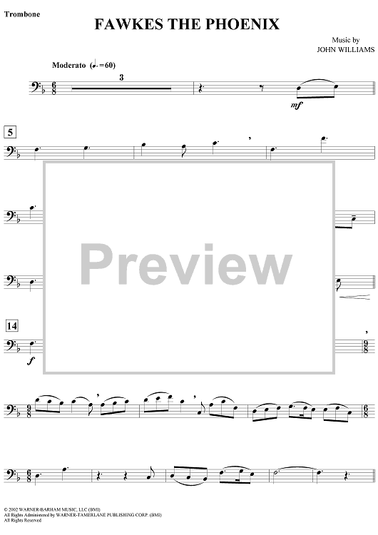 Digital Sheet Music for Fawkes the Phoenix by John Williams scored for Trombone/Piano; id:317352