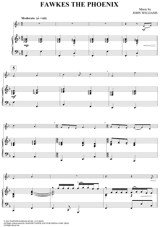 "Fawkes the Phoenix" Sheet Music by John Williams