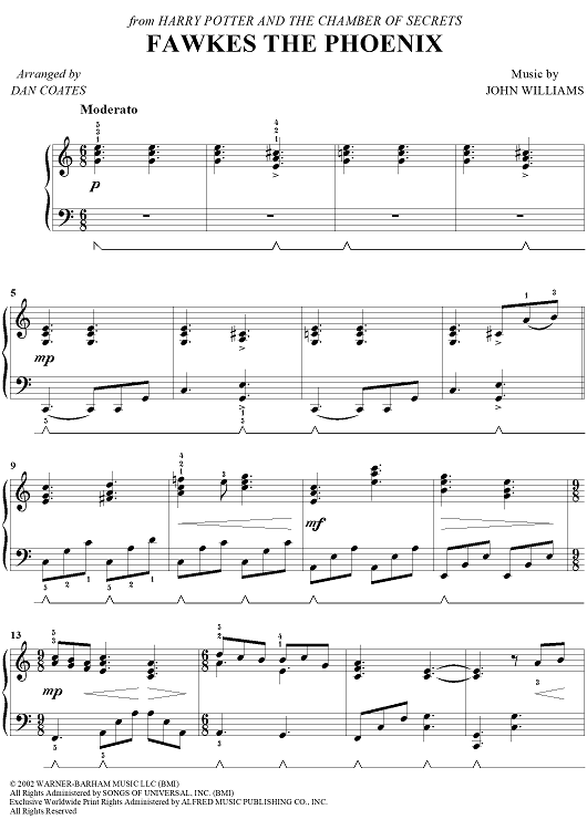 Digital Sheet Music for Fawkes the Phoenix by Dan Coates, John Williams scored for Piano; id:444652