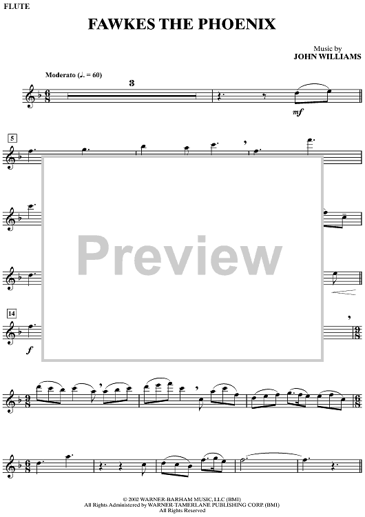 Digital Sheet Music for Fawkes the Phoenix by John Williams scored for Flute/Piano; id:498073