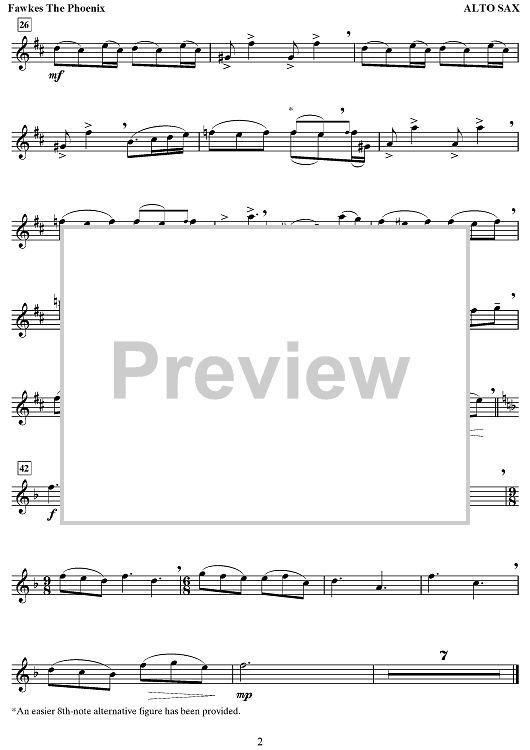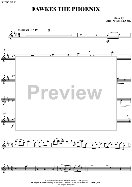 Digital Sheet Music for Fawkes the Phoenix by John Williams scored for Alto Sax/Piano; id:498095