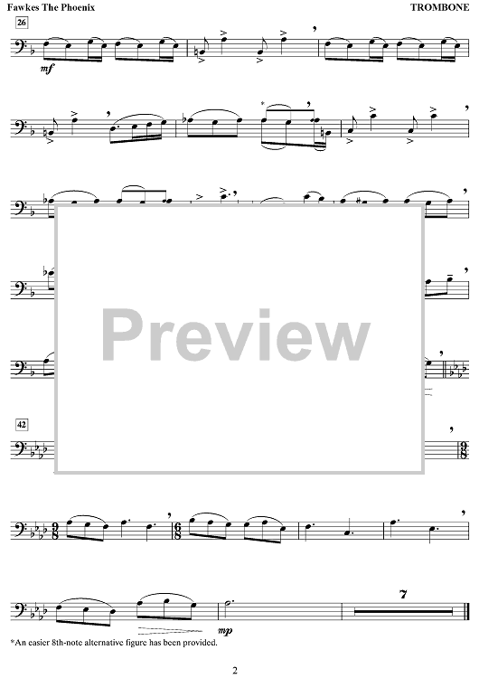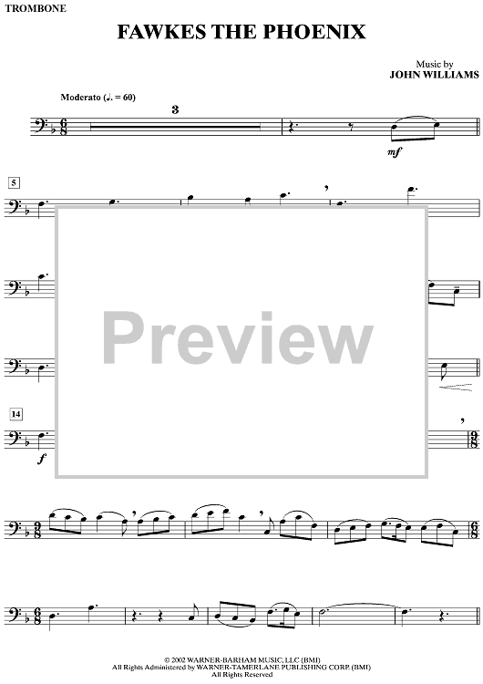 Digital Sheet Music for Fawkes the Phoenix by John Williams scored for Trombone/Piano; id:498145