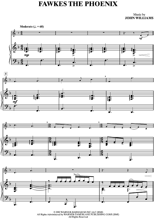 "Fawkes the Phoenix" Sheet Music by John Williams