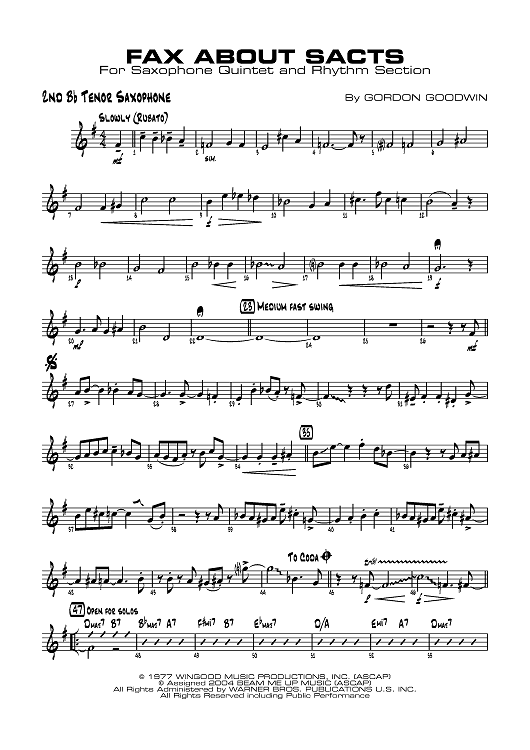 Digital Sheet Music for Fax About Sacts - B-flat Tenor Saxophone 2 by Gordon Goodwin scored for Saxophone Quintet/Rhythm Section; id:358418