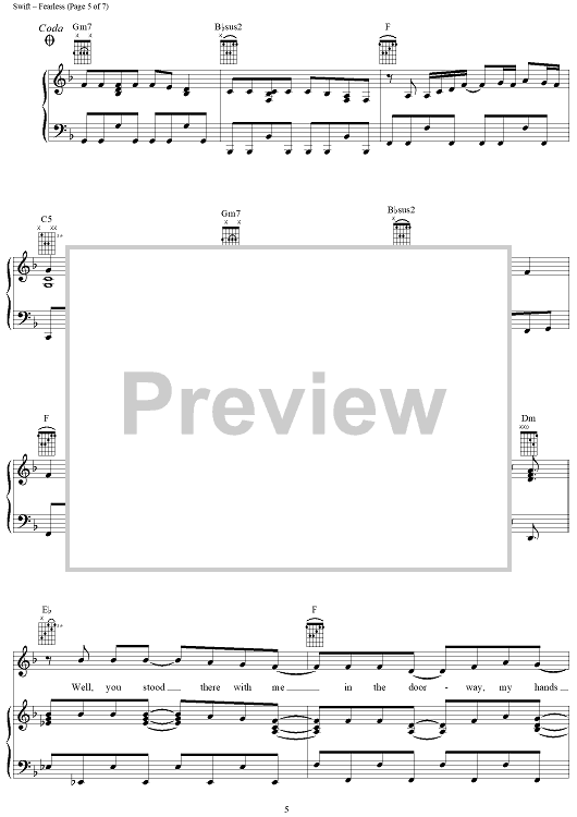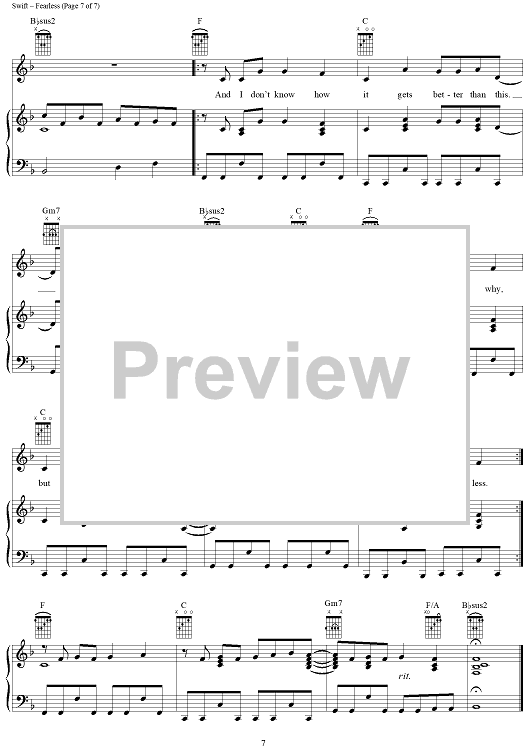 "Fearless" Sheet Music by Taylor Swift