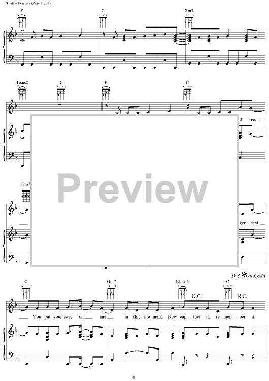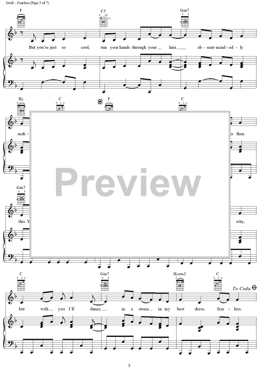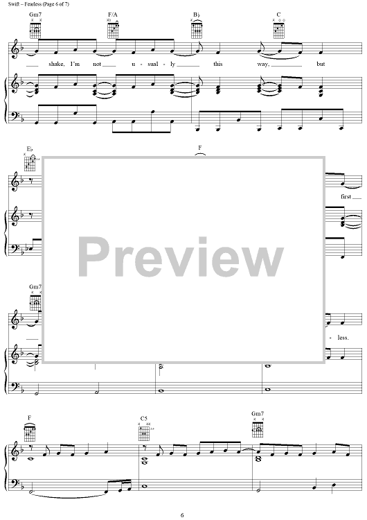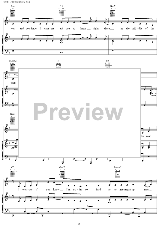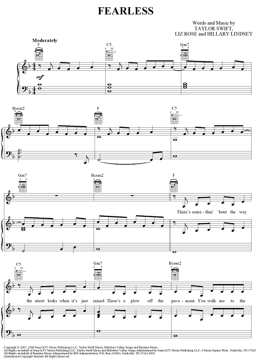 Digital Sheet Music for Fearless by Taylor Swift scored for Piano/Vocal/Chords; id:408514