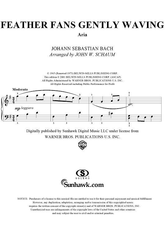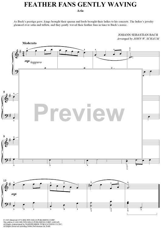 Digital Sheet Music for Feather Fans Gently Waving (Aria) by John W. Schaum, Johann Sebastian Bach scored for Piano Solo; id:293089