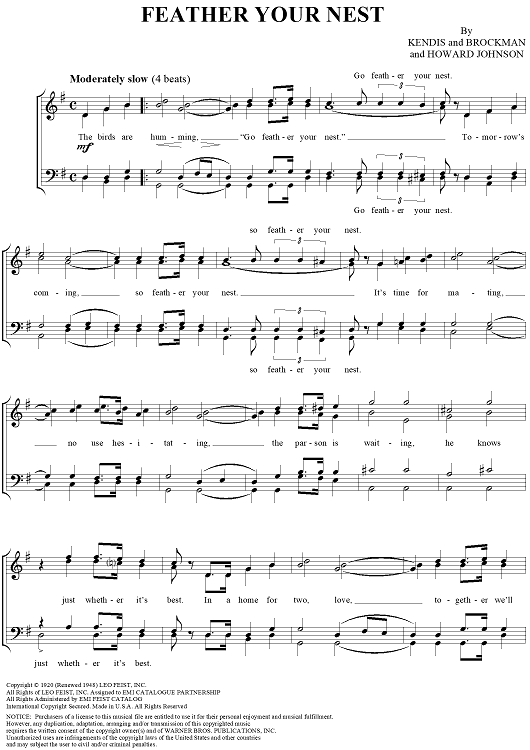 Digital Sheet Music for Feather Your Nest by Howard Johnson, James Kendis, James Brockman scored for Barbershop Quartet; id:240651