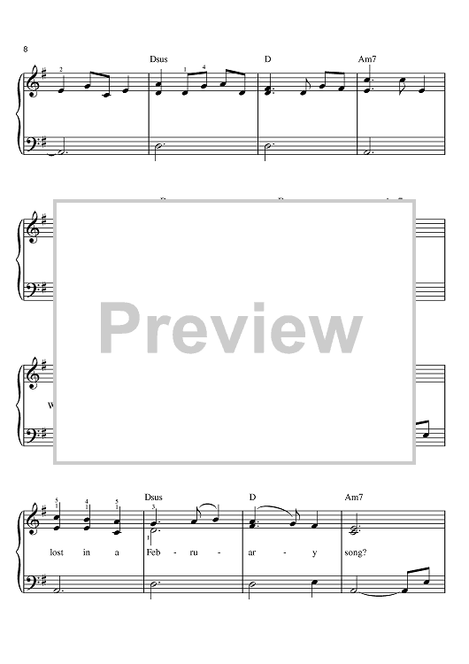 Digital Sheet Music for February Song by Marius De Vries, Josh Groban, Five for Fighting scored for Easy Piano; id:397914