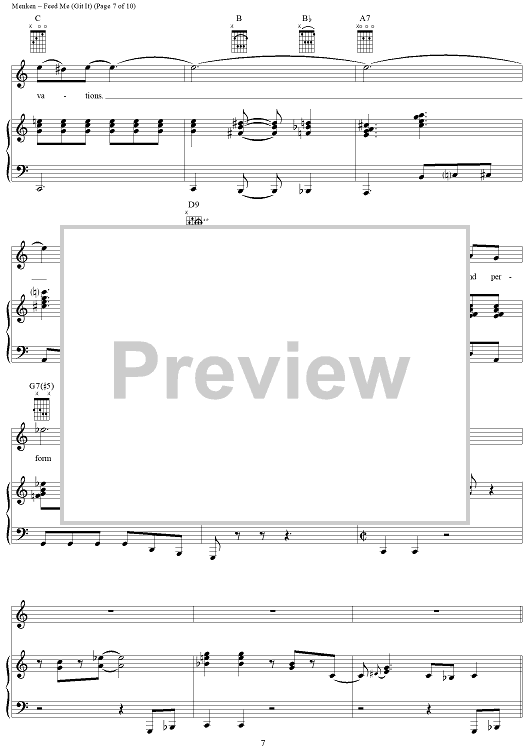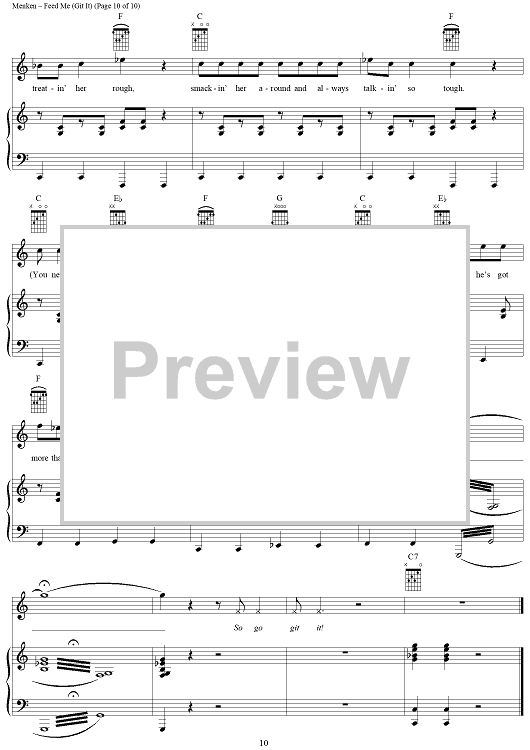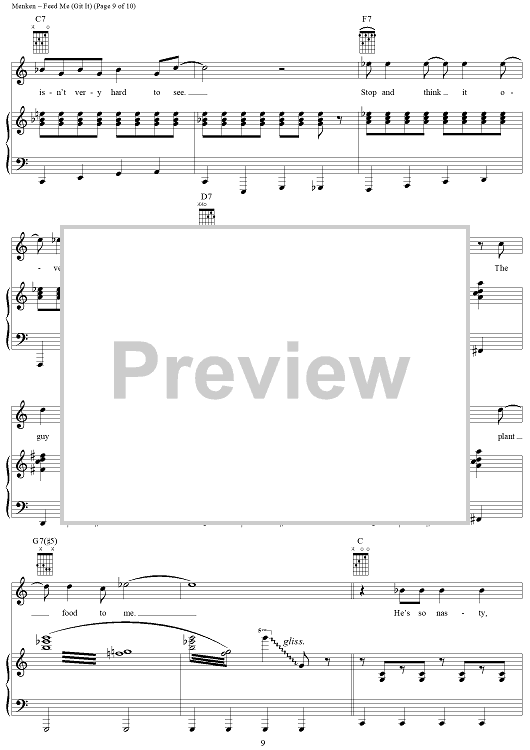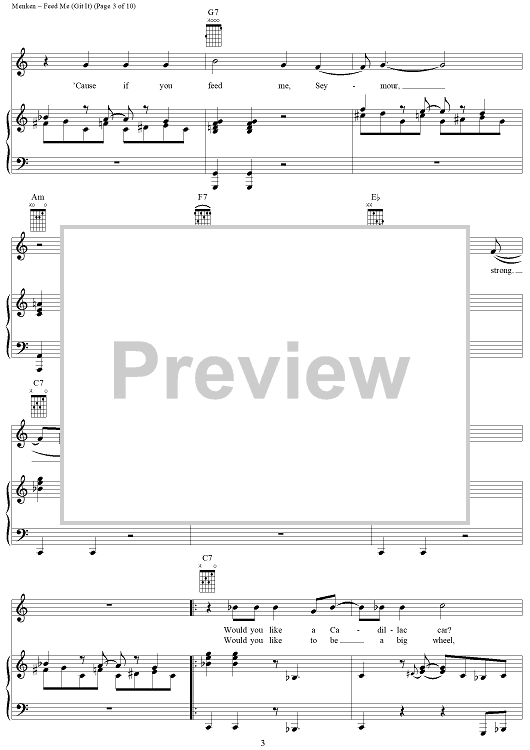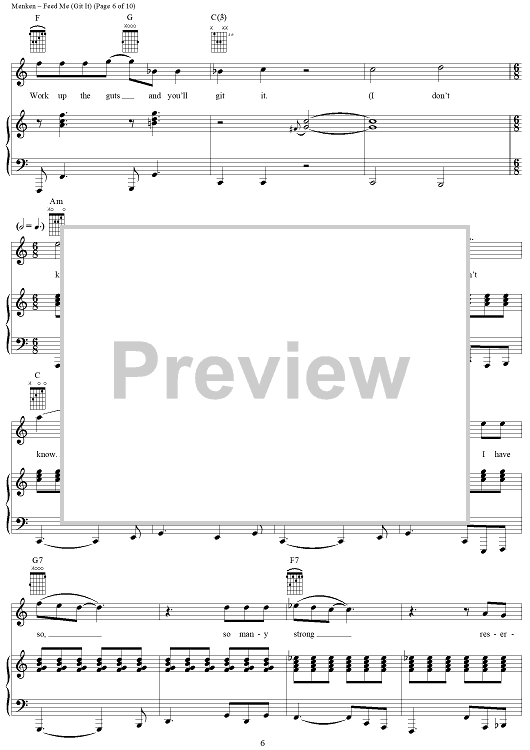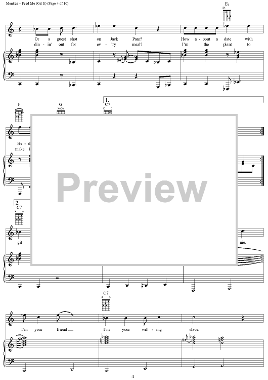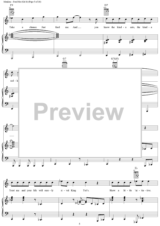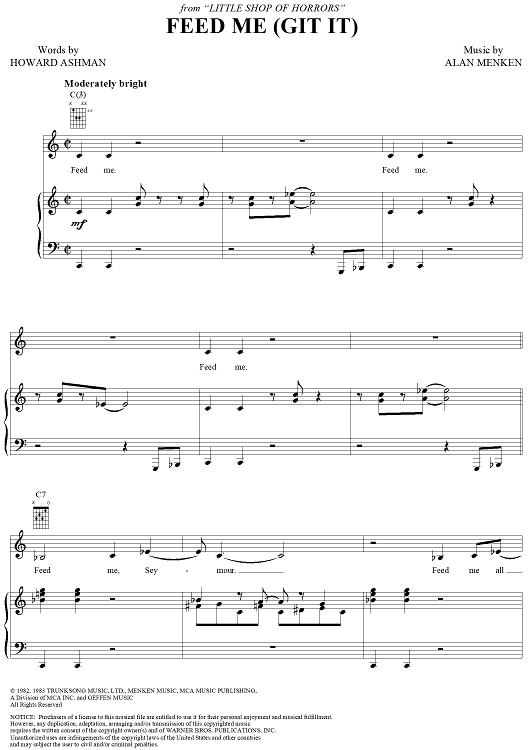 Digital Sheet Music for Feed Me (Git It) by Alan Menken, Howard Ashman scored for Piano/Vocal/Chords; id:308110