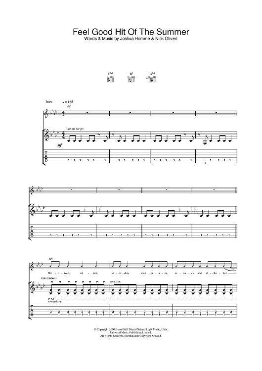 Digital Sheet Music for Feel Good Hit Of The Summer by Queens of the Stone Age scored for Guitar Tab; id:377522