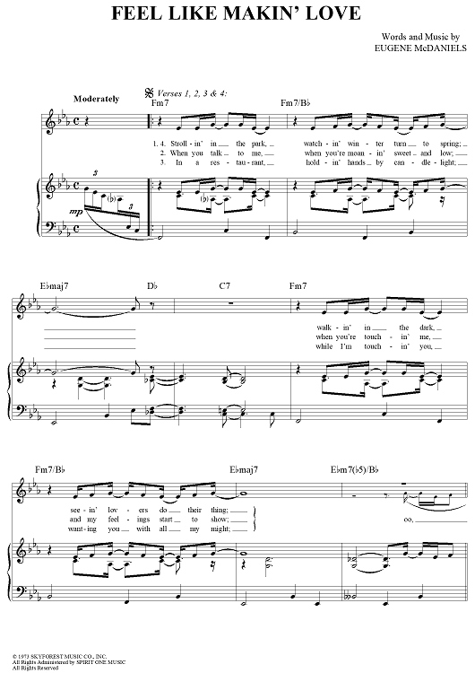 Digital Sheet Music for Feel Like Makin' Love by Roberta Flack, Eugene McDaniels scored for Piano/Vocal/Chords; id:288235