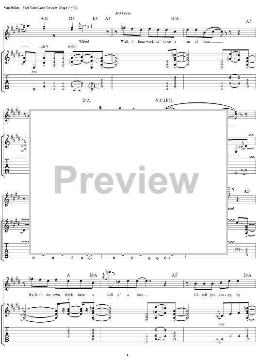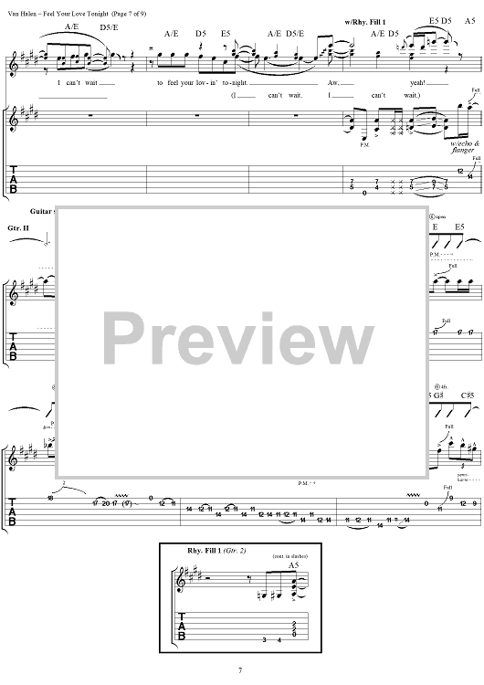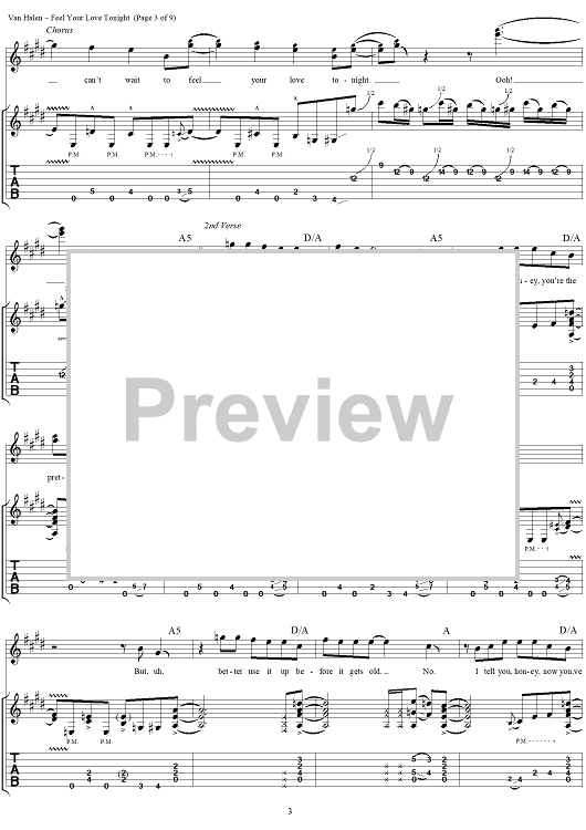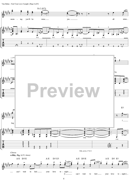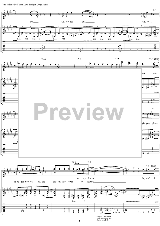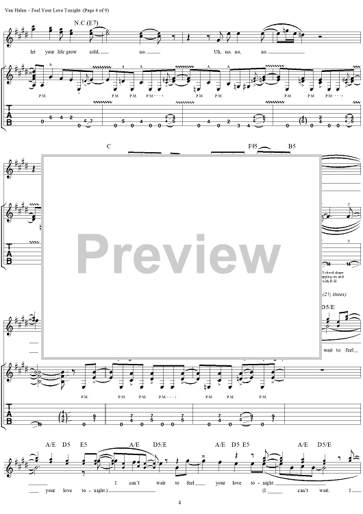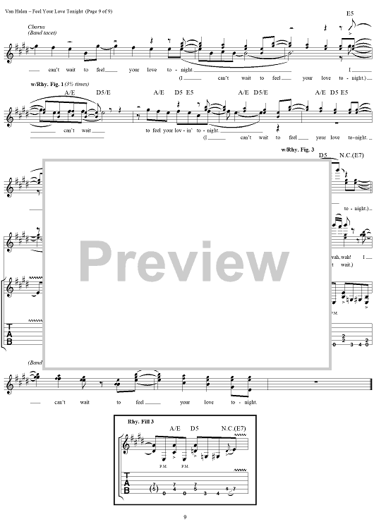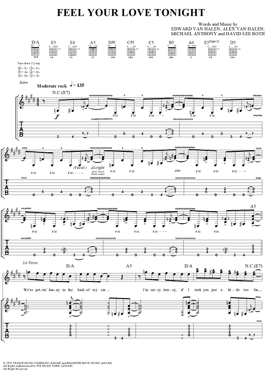 Digital Sheet Music for Feel Your Love Tonight by Eddie Van Halen, David Lee Roth, Michael Anthony, Alex Van Halen, Van Halen scored for Guitar Tab/Vocal; id:113525