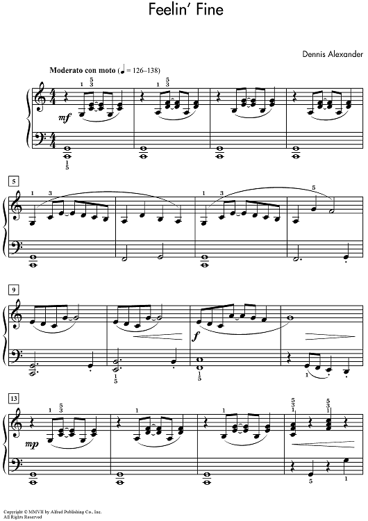 "Feelin' Fine" Sheet Music by Dennis Alexander
