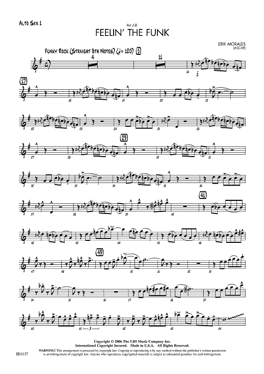 Digital Sheet Music for Feelin’ the Funk - Alto Sax 1 by Erik Morales scored for Jazz Ensemble; id:456135