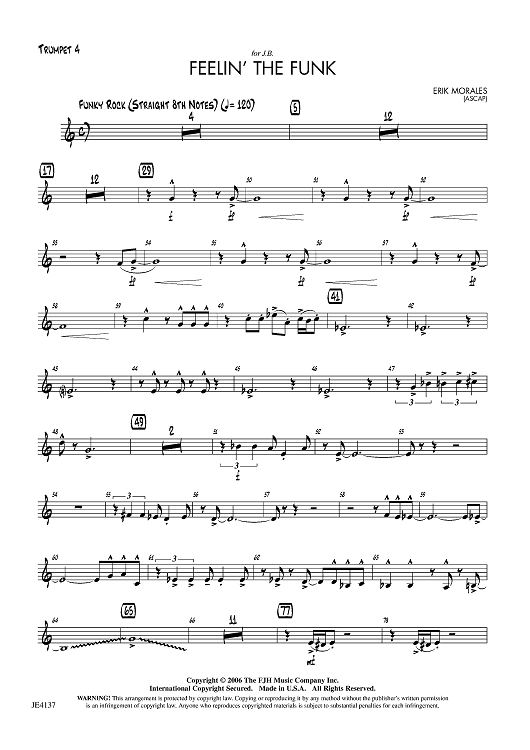 Digital Sheet Music for Feelin’ the Funk - Trumpet 4 by Erik Morales scored for Jazz Ensemble; id:456143