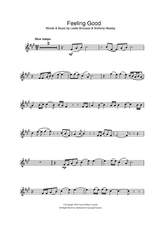 Digital Sheet Music for Feeling Good by Leslie Bricusse, Nina Simone, Michael Buble, Huff & Herb, Muse, Anthony Newley scored for Bb Instrument Solo; id:386579